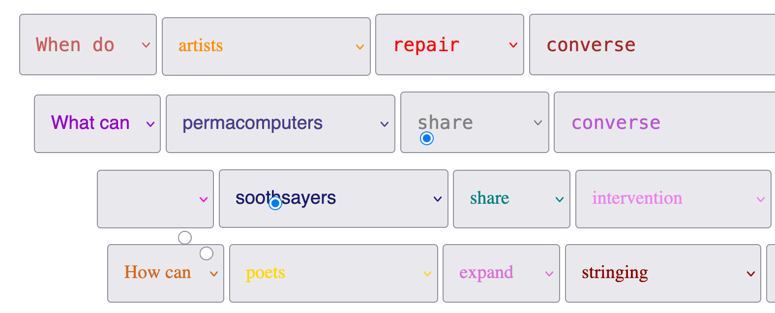 Le second : Un stream de prompts réalisés sur le générateur d'image Midjourney, ici rassemblé comme de la poésie pataphysique : https://stijnpeeters.nl/prompts/